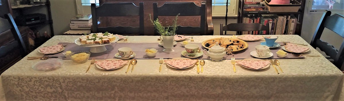 Food preparation began days before the High Tea. Several people baked pastries and other items for the event. Even Old Fuzz Face lent a hand for baking scones and lavender tea bread. Most of the difficult cooking tasks fell on the shoulders of dear Wife and her most faithful friend, Nancy. Let me just say, culinary miracles were performed in the kitchen, and I was fortunate enough to partake of some of the leftovers.