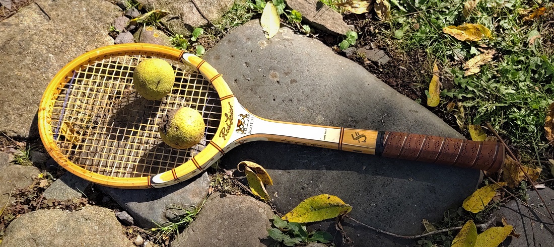 And so it was when my clever wife encountered the new-found pastime of her beloved grandsons. She was inspired by them. So inspired, in fact, that she immediately set out to develop the once primitive form of “walnut whacking” into a great family sport that someday might even surpass the ever-popular “cornhole.” And, at the same time, the magnificent grounds of SFH would be cleansed of the offensive rotting walnuts.