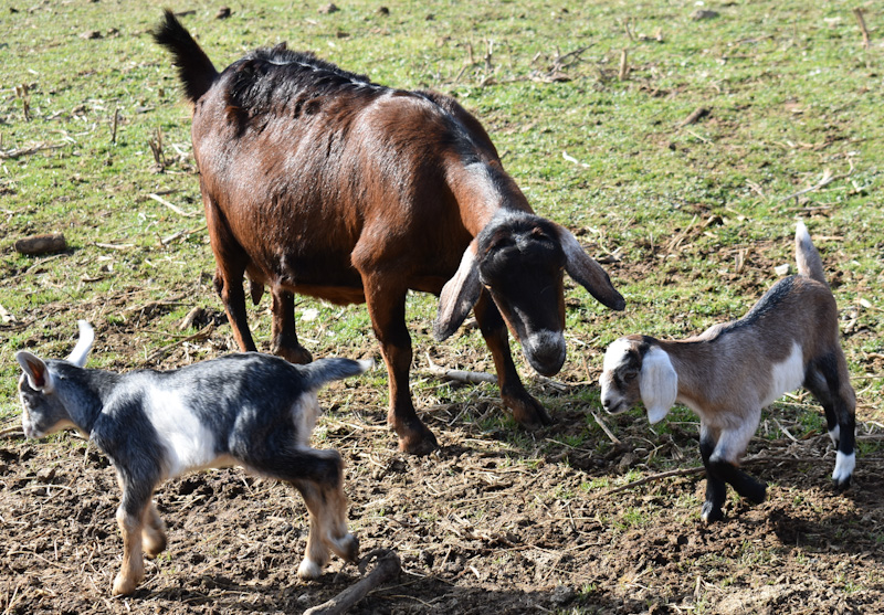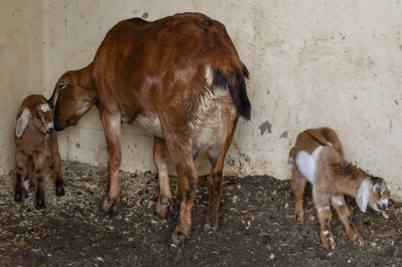 After 140+ days of gestation through late Autumn and well into Winter, the does/nannies had carried their young ones. Now, almost as if they were waiting for this temporary warm spell, the young ones are making their appearance.