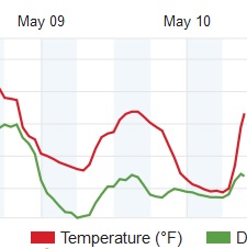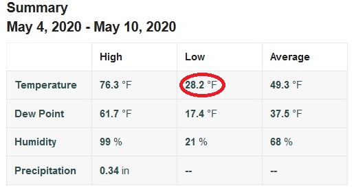 Then came the polar vortex – chilly days and freezing nights. Each night grew colder. By the early morning of May 10th, we saw three hours steady of 28 degrees.