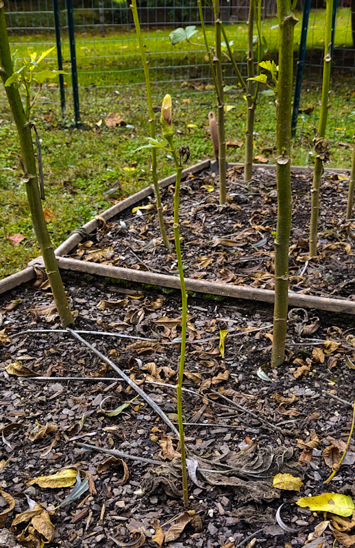 A real measure of a life well lived is the extent to which one strives to “be fruitful” and to pass life on to another generation – even when there seems to be no chance for success. Our okra plants illustrate this thought so well. Below we see the beautiful Blossom of Hope despite the chill in the air. Then there is the okra pod that will never mature but has enjoyed its day in the sun. Finally, we have the tiny okra plant that had been overshadowed by all those around it, yet even this diminutive plant brings forth a bud and blossom.