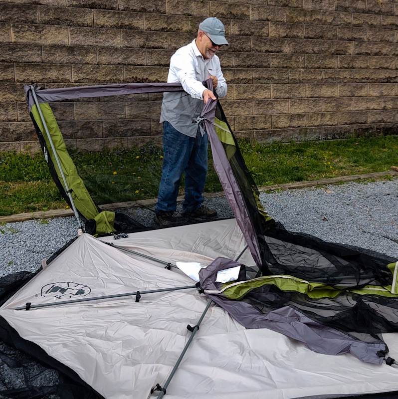 There are some days when Fuzzy gets out of bed that it’s obvious that he has been taken over and possessed by his inner-dork.* Monday April 12th was one of those days. It was apparent from the time we rolled out of the SFH estate in our Class-C RV that he was supercharged with grandiose visions of what a great trip this would be. When we arrived at Shenandoah River State Park and finished setting up, he could no longer contain his excitement. This would be the day he would have his chance to instantly set up the new 15 x 13 FT INSTANT SCREENHOUSE.