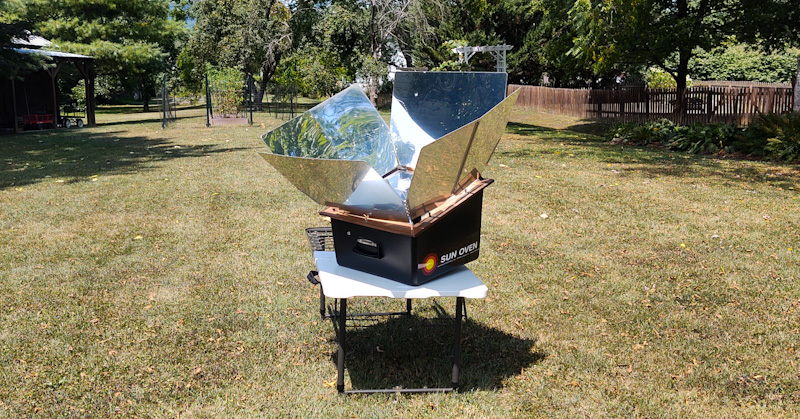 On August 6th, the sun rose and there was some haze in the sky. The forecast indicated that clouds would move in later in the day. Our chances of success were diminishing rapidly and we knew we wouldn’t be free to start cooking until nearly 1 PM. Nevertheless, Blondie and I were committed – we were going to make this work. So, at about 12:10 I set up the oven and began preheating it. By 12:31 it had reached 275°.