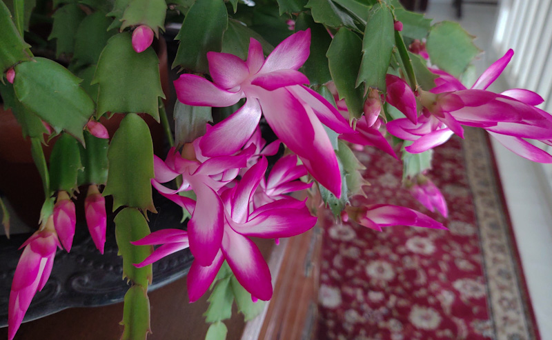 Highlight 2: Our featured picture, however, summons hope for the coming season. Our Christmas cactus has been with us since Idaho. Its brave parent plant was a gift to my Mother many years ago in Ohio. It made the trip to Virginia when she passed away. And then, in true pioneering spirit, it crossed plains and deserts to live with us in Idaho. The blossoms of today bring memories of my Mom and remind us that Christmas will soon be here.