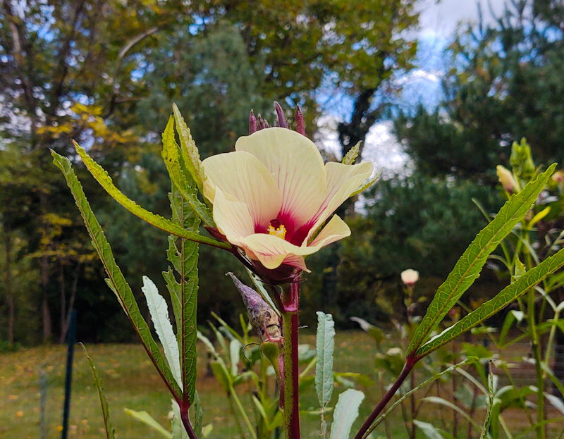 A real measure of a life well lived is the extent to which one strives to “be fruitful” and to pass life on to another generation – even when there seems to be no chance for success. Our okra plants illustrate this thought so well. Below we see the beautiful Blossom of Hope despite the chill in the air. Then there is the okra pod that will never mature but has enjoyed its day in the sun. Finally, we have the tiny okra plant that had been overshadowed by all those around it, yet even this diminutive plant brings forth a bud and blossom.